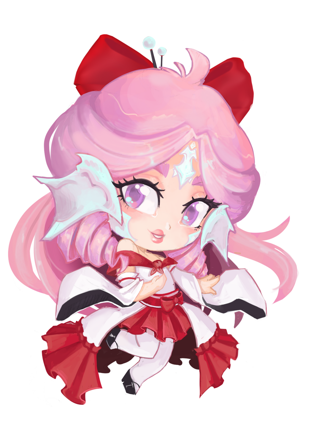 ❀Hair Color: Pale pink with white highlights